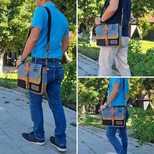 4047 Antiochia GL Hakiki Deri Omuz Postacı Okul Suya Dayanıklı Mumlu Kanvas Laptop Çantası