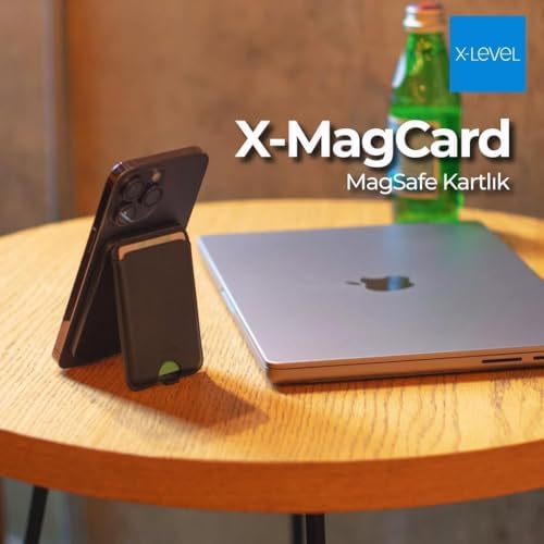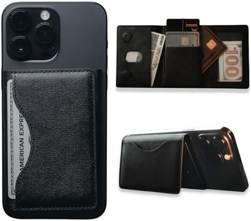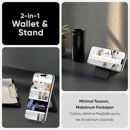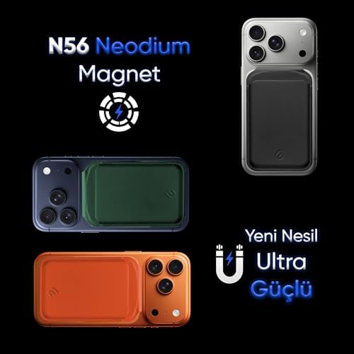 ile Uyumlu MagSafe özellikli Cüzdan Vegan Deri Güçlü Mıktanıs 6 Kart Hazneli Kartlık (Siyah)
