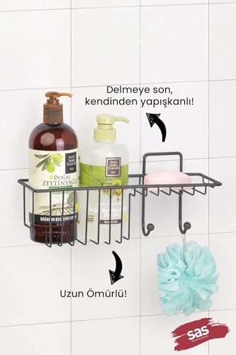 2'li Parlak Krom Yapışkanlı Banyo Rafı, Duş Şampuanlık, Paslanmaz Metal Duvar Rafı (Yapıştır/Vidala)