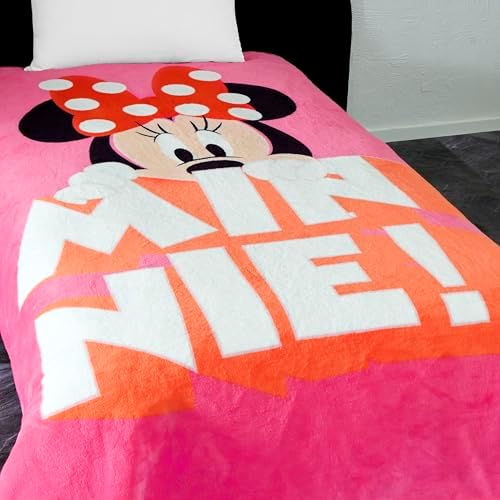 Minnie Mouse Çizgi Film Karakteri Pamuk-Polyester Karışım Battaniye, Pembe, Beyaz, Siyah, Tek Kişilik