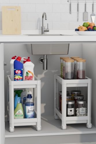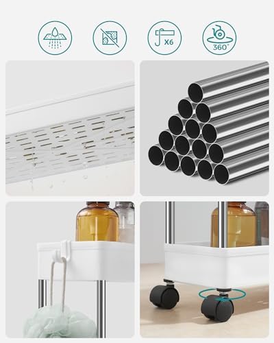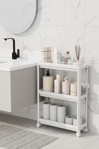 Life 3 Katlı Tekerlekli Slim İnce Beyaz Banyo Mutfak Rafı MIT1125