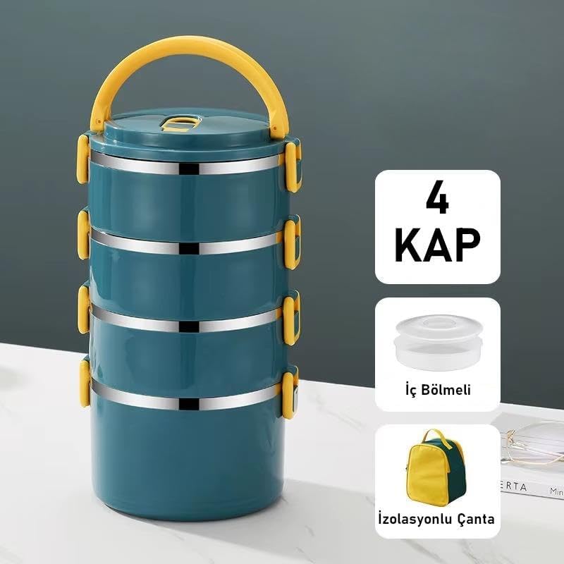 4 Gözlü Çelik Termal Çanta Okul, Piknik ve Seyahat İçin Taşınabilir Bento Kutusu Yemek Kabı