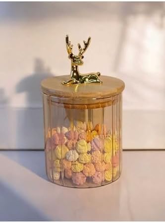(9X10 Cm) 1 Adet Kehribar Renk Geyikli Cam Saklama Kavanozu Geyik Başı Altın Renk Y-481,Kehribar