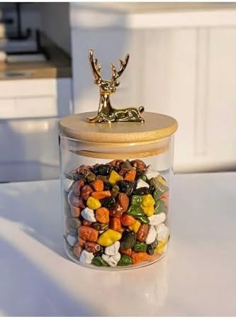 (9X10 Cm) 1 Adet Geyikli Cam Saklama Kavanozu Geyik Başı Altın Renk Hava Geçirmez Y-421,Şeffaf