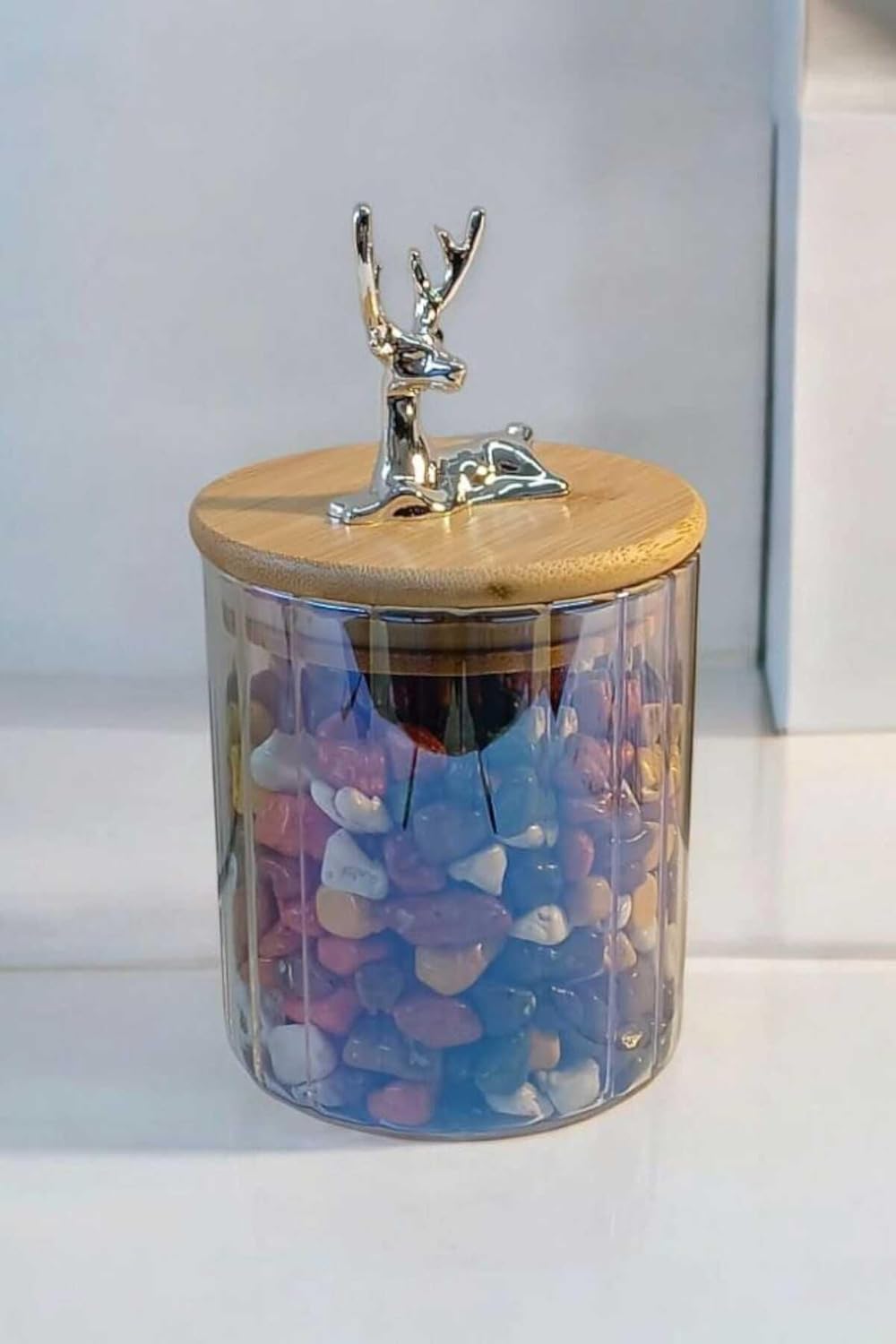 (9X15 Cm) 1 Adet Geyikli Cam Saklama Kavanozu Geyik Başı Gümüş Renk Hava Geçirmez Y-401,Şeffaf