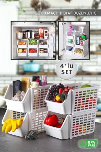4 Adet Çok Amaçlı Dolap Içi Ve Buzdolabı Içi Katlı Düzenleyici Beyaz