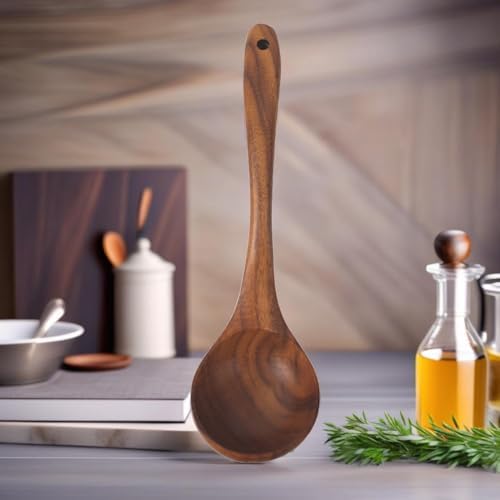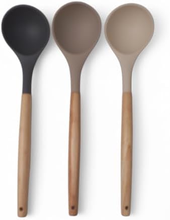 Bambu Saplı Silikon Kepçe, Bambu Uzun Silikon Çorba ve Sos Kepçesi 27cm 3 Renk Seçenekli (SİYAH)