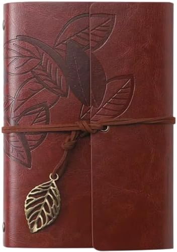 Yaprak Baskılı Deri Kapaklı Günlük Not Defteri Özel Tasarım Hediyelik Kahverengi