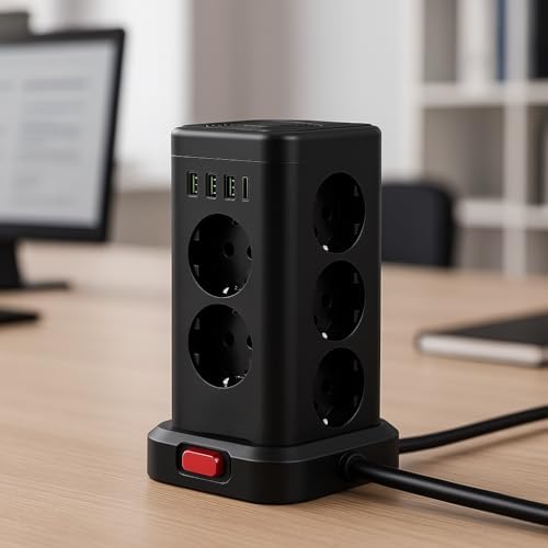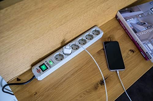 – Plus 6'lı çoklu priz (yassı fişli, şalterli, 2 m kablolu ve ekstra geniş priz mesafeleri) siyah
