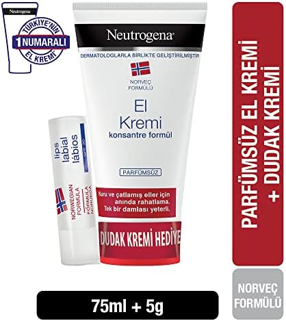 Neutrogena Norveç Formülü Kuru ve Çatlamış Eller için Parfümsüz El Kremi (1 x 75 ml) + Dudak Kremi