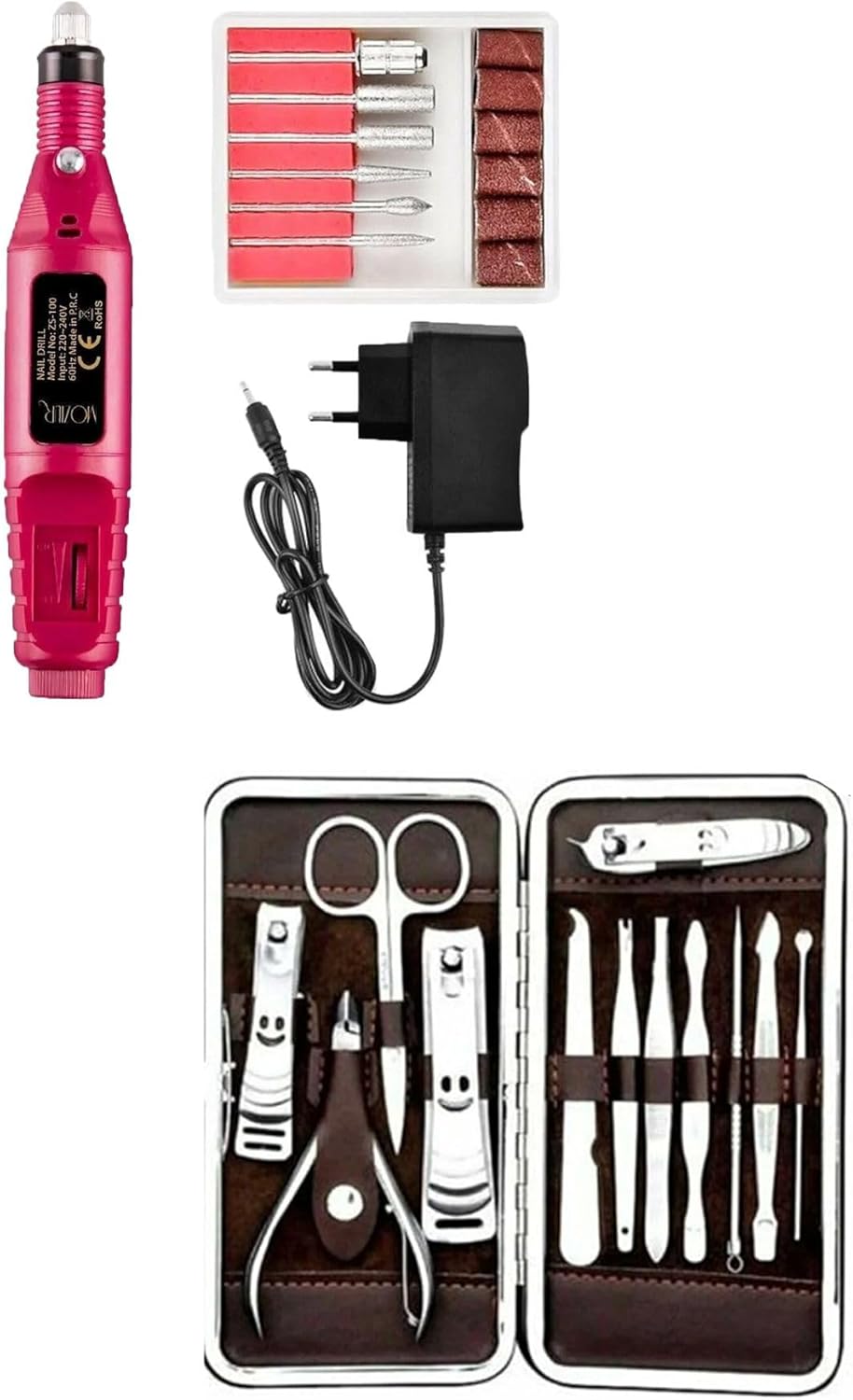 12 Parça Çantalı Manikür Pedikür Seti Ve Elektrikli 12V Tırnak Törpü Manikür Pedikür Makinesi Set