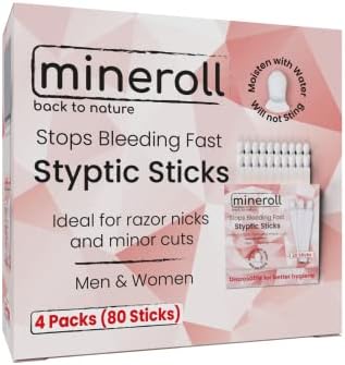 Mineroll Tek Kullanımlık Çubuk Kan Taşı, Erkekler ve Kadınlar için Ufak Jilet Kesikleri ve Manikür Pedikür Uygulamalarında Kanamayı Durdurur, 20'li 4 Paket