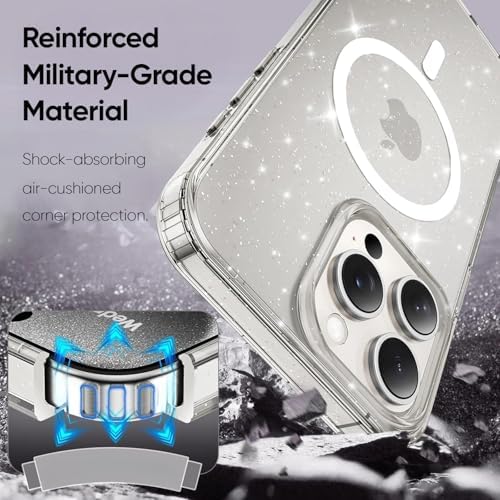 14 Pro Max için MagShine Serisi MagSafe ile Uyumlu Göz Alıcı ve Şık Simli Arka Tasarım Yüksek Kalite Materyal Premium Hybrid Kılıf Kapak (Şeffaf, 14 Pro Max)