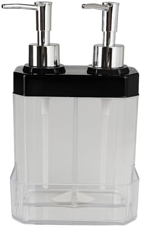 2 Bölmeli Sıvı Sabunluk & Süngerlik – Bulaşık Deterjanı Ve El Sabunu İçin Çift Hazneli, Entegre Süngerlik Bölmeli, Tezgah Üstü Pratik Sabunluk Tezgah Düzenleyici (Siyah)