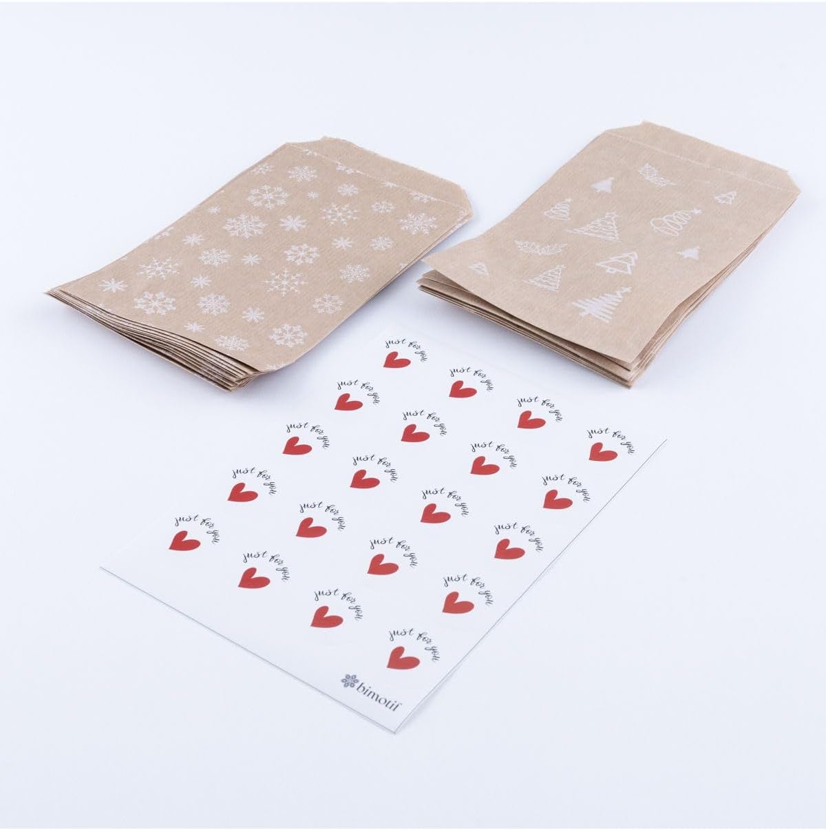 20 adet çam ve kar desenli kese kağıdı (11×20 cm) ve for You stickerdan oluşan set