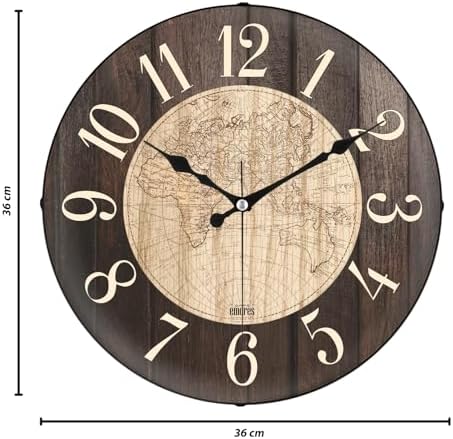 ABS Kasa, Ofset ve Serigrafi Baskılı Kadran 1.Sınıf Kalite Makine Sessiz Akar Saniye Kahverengi 36 Cm Dekoratif Gerçek Cam Sessiz Mekanizma Duvar Saati
