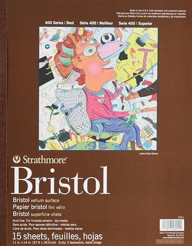 Nihai sanat eserleri için parşömen yüzeyli ağır Bristol kağıdı Grafit, kömür, eskiz kalemleri, renkli kalem, pastel, kalem, mürekkep ve airbrush için ideal Asit içermez, kolay karıştırma ve gölgeleme için orta dokulu yüzeye sahip 2 katlı 27,9 x 35,6 cm, bantla bağlı Blok başına 15 yaprak 400 Serisi Bristol, 2 katmanlı parşömen kağıdı, 27,9 x 35,6 cm, ciltli, 15 yaprak