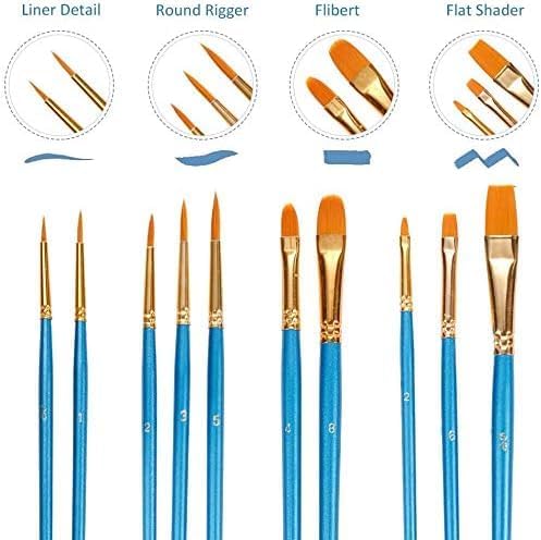 5 SET Sanatçı Fırcası Seti, 10'lu Paket Naylon Fırca, Resim, Akrilik, İnce Fırca, Sulu Boya ve Yüz Boyama, Kendin Yap El Sanatları İçin, Mavi, Toplam 50 Fırca