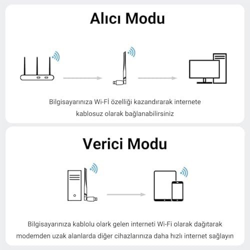 650Mbps 2.4GHz/5GHz Alıcı Verici USB WiFi Adaptör, masaüstü bilgisayarlarınıza ve kablosuz bağlantı özelliği olmayan dizüstü bilgisayarlarınıza kablosuz bağlantı kazandırır. 650 Mbps aktarım hızı ile kesintisiz internet deneyimi sunar. 2.4GHz frekansı geniş bir kapsama alanı sağlarken, 5GHz frekansı daha yüksek hız sunar ve bu iki bandı aynı anda kullanarak size hem geniş çekim alanı hem de yüksek performanslı internet bağlantısı sağlar. 5DB anteni, güçlü sinyal alımıyla en uzak mesafelerden bile WiFi sinyalini çekmenize imkan tanır. 180 derece ön ve 90 derece yan dönüş açısına sahip esnek anten tasarımı sayesinde sinyal hassasiyetini artırarak yüksek hızlı internet deneyimini kesintisiz yaşamanızı sağlar. Verici modunu kullanarak, bilgisayarınıza gelen kablolu interneti kablosuz olarak dağıtabilir, bu sayede sinyal gücünün düşük olduğu yerlerde bile kablosuz interneti sağlıklı bir şekilde kullanabilirsiniz. WPA-PSK, WPA2-PSK ve WPE gibi güvenlik protokollerine sahip olan bu adaptör, internet bağlantınızın güvenliğini sağlar. Ayrıca, bilgisayarınızın konumunun izlenmesini zorlaştıran “Rastgele Donanım Adresleri” özelliğini Windows üzerinden etkinleştirmenize izin vererek gizliliğinizi korur. Tak çalıştır özelliği sayesinde sürücü kurulumuna gerek kalmadan hızlıca kullanıma hazır hale gelir. Dayanıklı ABS malzemeden yapılmış dış kasası ile adaptörünüz dış koşullara karşı tam koruma sağlar ve uzun süreli kullanım sunar. Model: V-K650 Anten: 5 dBi Bağlantı: USB-A Çip: RTL-8811 İletim Hızı: 650 Mbps Frekans Aralığı: 2.4Ghz / 5GHz 650 Mbps 2.4GHz/5GHz Dual Band Alıcı Verici USB WiFi Adaptör