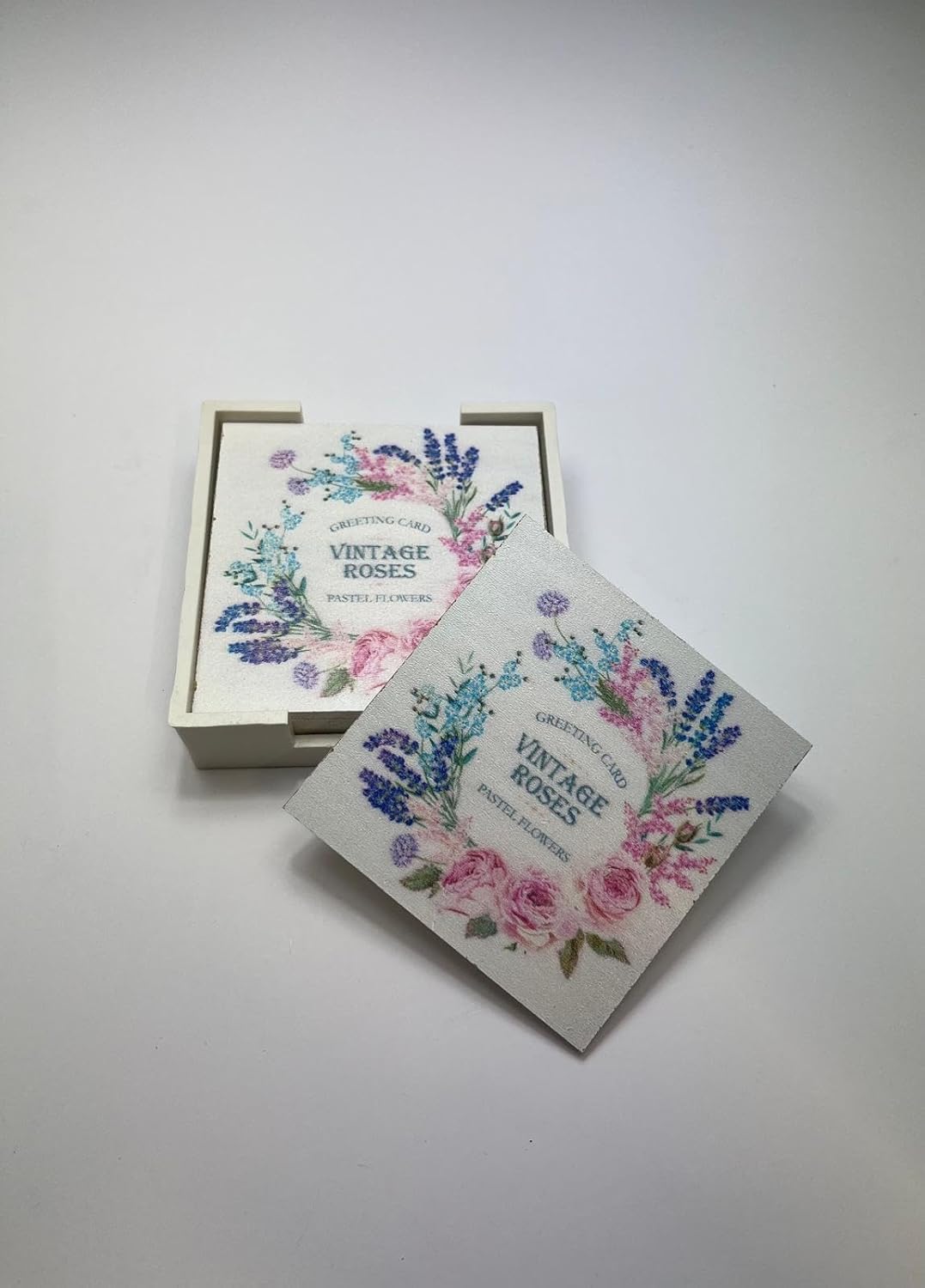 6’lı Ahşap Bardak Altlığı Seti (Kutulu – Çiçek Desenli)