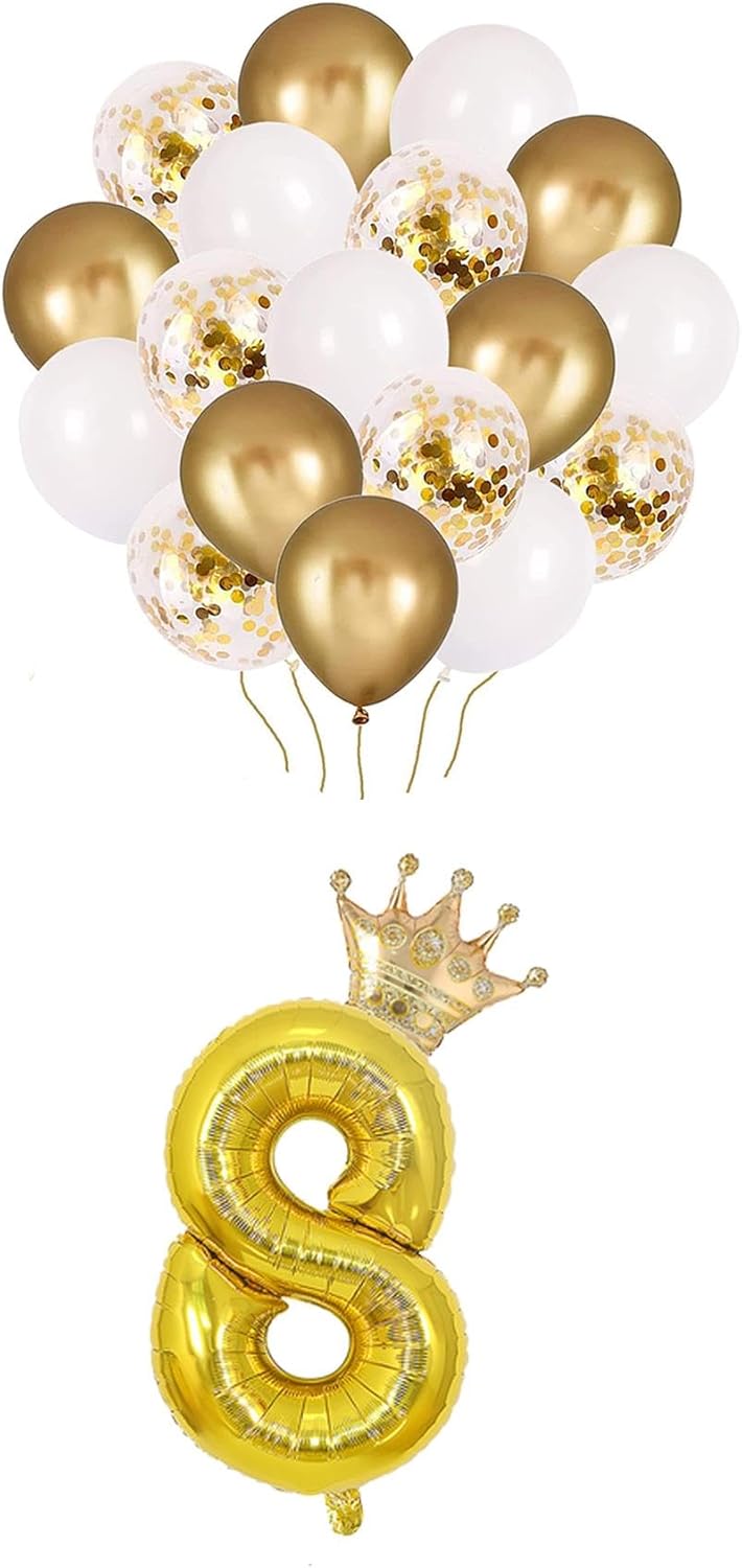 8 Rakam Folyo Balon, Kral Tacı Ve Konfetili Balon