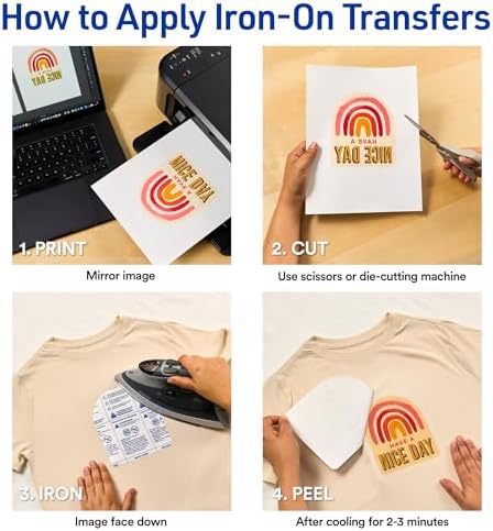 Kendi ütüyle yapıştırılabilir transferlerinizi yaratın ve özelleştirin; 21,5 x 28 cm transfer kağıtları yüz maskelerini, tişörtleri, önlükleri, yastık kılıflarını, çantaları, şapkaları, atletleri ve daha fazlasını kişiselleştirmek için harikadır. Beyaz veya açık renkli %100 pamuk/polyester pamuk karışımı kumaşlar için idealdir; benzersiz formüllü ısı transfer kağıdı kumaşla bağ kurarak yumuşak, esnek, makinede yıkanabilir ve solmaya karşı dayanıklı hale getirir. Metni, görüntüleri ve fotoğrafları standart ev tipi bir ütü veya profesyonel ısı presiyle açık renkli kumaşlara aktarın; kumaş transfer kağıdı için tam talimatlar her pakete dahildir (Türkçe olmayabilir). Mürekkep püskürtmeli yazıcınızda kreasyonlarınızı kolayca evde yazdırın; makas veya ve gibi elektrikli bir kesme makinesi kullanarak ütüyle yapıştırılan transfer kağıdını yazdırın ve kesin. Çocuk el işi, marka tanıtımı ve yüz maskelerini veya önlüklerinizi etiketlemek için harikadır. sitesinde bulunan ücretsiz şablonlar ve tasarımlarla yazdırılabilir ısı transfer kağıdını kolayca özelleştirin. Açık Renk Kumaşlar için Isı Transfer Kağıdı, 21.6×28 cm, Mürekkep Püskürtmeli Yazıcı Uyumlu, 18 Sayfa (8938)