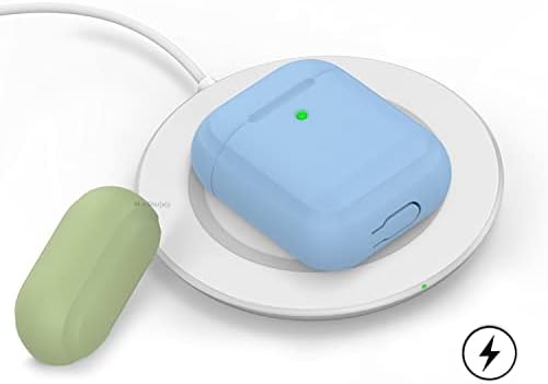 AirPods 1 & 2 Nesil Uyumlu Silikon Kılıf – Darbe Emici, Yumuşak Mat Doku, Kaymaz Yüzey, Yedek Kapak Hediyeli – Şarj Giriş Uyumlu Koruyucu Kılıf Açık Mavi