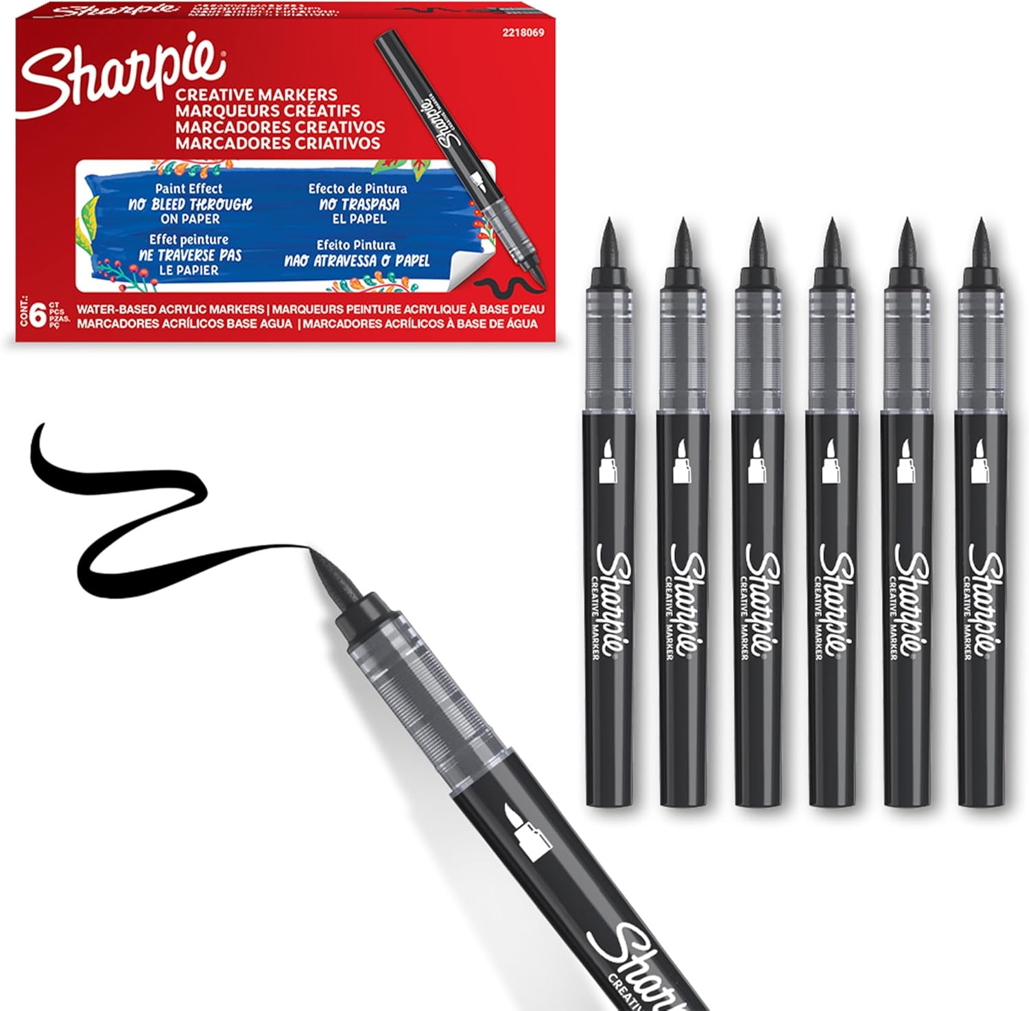 Sharpie Akrilik Markör Fırça Uç Akrilik markör, Fırça uç, Siyah Akrilik markör, Fırça uç, Siyah