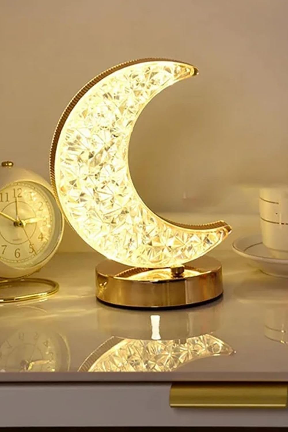 Ay Kristal Masa Lambası – 3 Renkli Dokunmatik Akrilik Led Romantik Gece Lambası Şarjlı