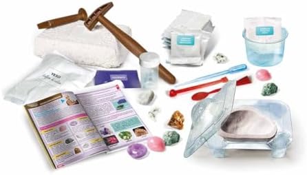 Değerli taşları kazıp çıkarmak için bilimsel set Sette mineralleri ve değerli taşları kazımak için oyulması gereken bir tuğla, renkli kristaller üretmek için bir kalıp ve dev bir kristal büyütmek için gereken tüm elementler vardır Ayrıntılı bilimsel kılavuz, minerolojinin ve kristallerin tüm sırlarını ve tuzların kimyasal reaksiyonlarını içerir İtalya'da üretilmiştir 8 yaş ve üzeri için uygundur Bilim ve Oyun – Kristaller ve Mineraller Oyuncak