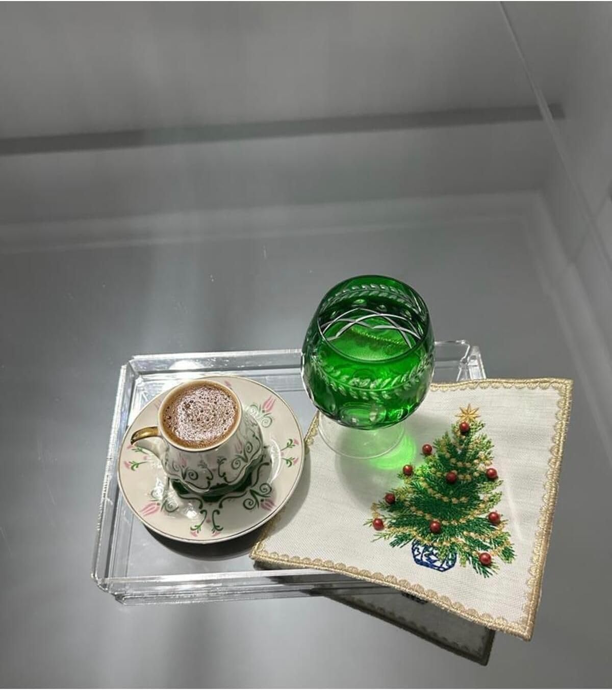 Boncuklu Yılbaşı Ağacı Kahve Fincanı Altlığı – 1 Adet Yeni Yıl Kokteyl Peçetesi