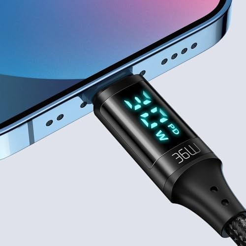 CA-1030 36W Type-C To Lightning Dijital Göstergeli Data-Şarj Kablosu 1.2M-Siyah