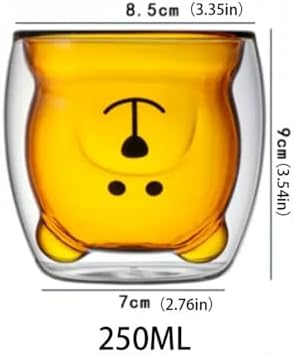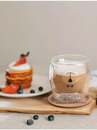 Çift Cidarlı Ayı Desenli Borosilikat Cam Bardak – 250 Ml, Dayanıklı,Kahverengi
