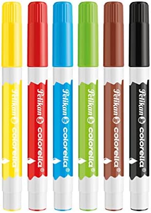 Kalın yuvarlak gövdeli, suyla çözünen keçeli kalem Yaklaşık 2-4 mm çizgi genişliği Fırça ve suyla boyanabilir ve karıştırılabilir 6 parlak renk Delikli kapak (ISO 11540) Colorella Suda Çözünür Keçeli Kalem 6lı Kutu