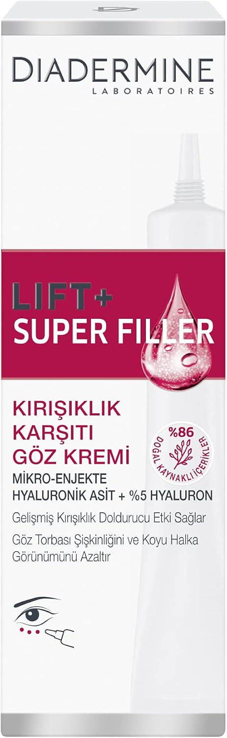 hedef cinsiyet: Kadın öğe formu: Krem cilt tipi: Karma ürün hacmi: 15 milliliters aktif maddeler: Hiyalüronik Asit Diadermine Lift+ Superfiller Göz Kremi, 15 ml