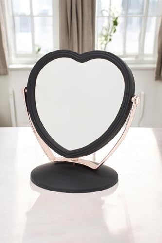 Efe Mark Süet PVC Serisi 3x Büyüteçli Çift Taraflı Ayarlanabilir Eğimli Masa Üstü Makyaj Aynası 19×12 CM Kalp Desenli