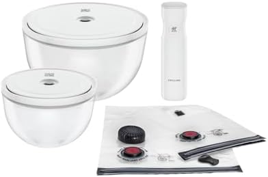 Yemek hazırlığı, pişirme, servis ve saklama için çeşitli kullanım imkanı sunar Vakumla mühürlenen yiyecekler tazeliğini beş kat daha uzun süre korur Çift vakumlama teknolojisine sahip vakum kapaklar, kaseler bulaşık makinesinde yıkanabilir, dondurucuya ve mikrodalgaya uygundur, kapaksız olarak 180 °C'ye kadar fırına dayanıklıdır Fresh & Save Bowls Vakumlu Saklama Kabı Başlangıç Seti, Cam, M/L, 9 Parça