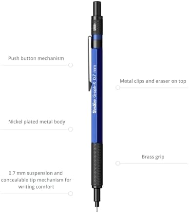 Tepede muhafazalı silgi Metal klips, tepe ve uç Tepeden basmalı mekanizma Nikel kaplama metal gövde 0.7 mm uç Graphx Versatil Kalem 0.7Mm Mavi