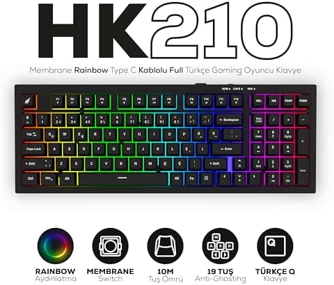 Gaming Klavye HK210 Membrane Type C Kablolu Full Türkçe Gaming Klavye (Siyah)