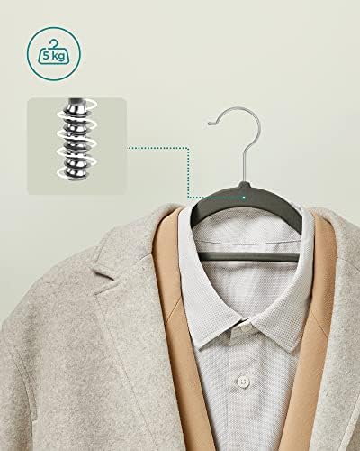 Kadife Elbise Askısı 20'li Set Kaymaz Küçük Bağlantı Demiri 360° Dönen Kanca 0,6 cm Kalın Yerden Tasarruf 43,5 cm Uzun Coats Pantolon için Gümüş Gri CRF20V