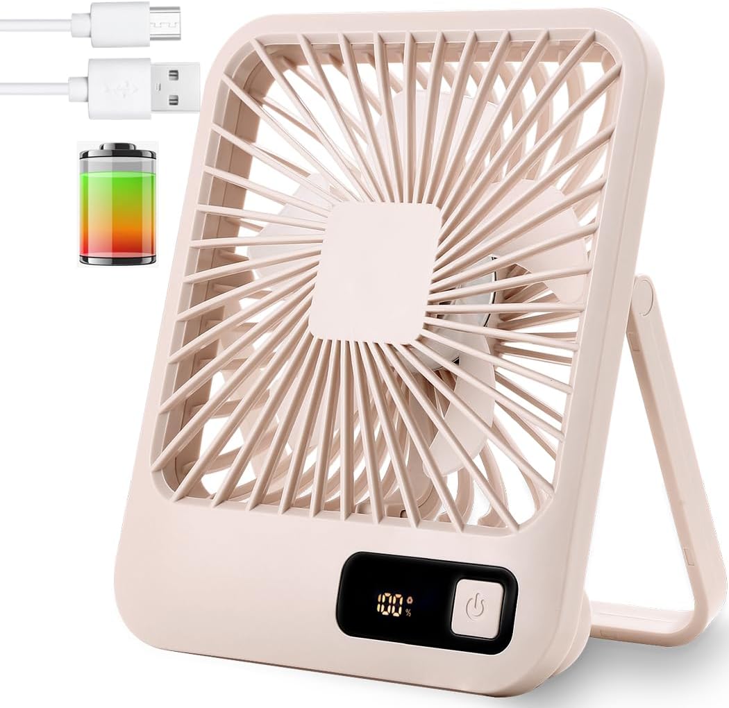 Küçük Masa Vantilatörü, Taşınabilir USB Şarj Edilebilir Fan, 2000 mAh Pil ve LCD Ekranlı Eğimli Katlanır Kişisel Mini Fan, Güçlü Rüzgar, Ultra Sessiz, Ofis, Ev, Kamp için 5 Hız Modu