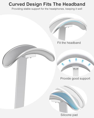 Kulaklık standı, AirPods Max için ağır kulaklık tutucu, kulak üstü kulaklık için çalışma masası aksesuarı, oyun kulaklığı, alüminyum, ABS ve silikon, gümüş beyaz