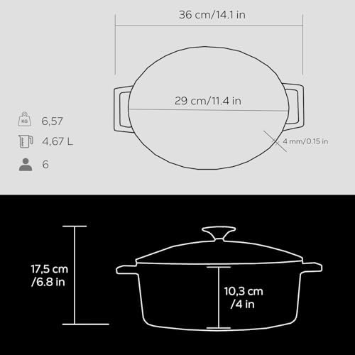 Metal Oval Döküm Tencere, 29 cm, 4.67 L Hacim, Siyah