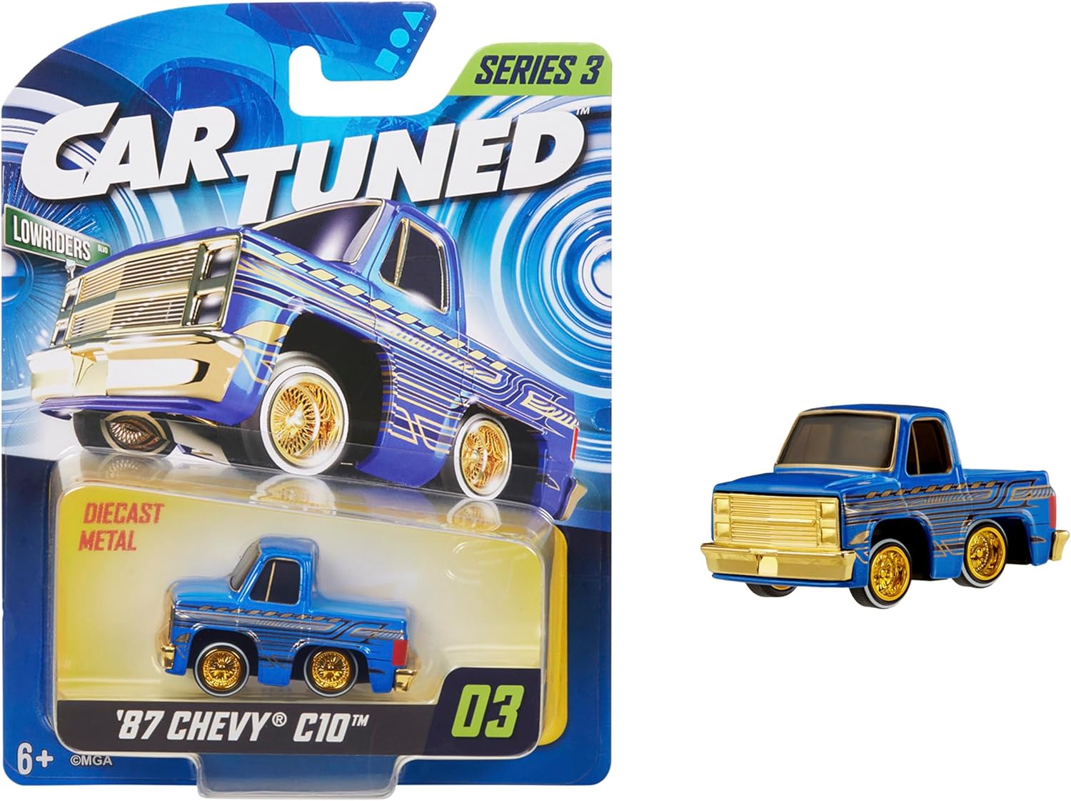 Biriktirilebilir koleksiyon arabası MGA Entertainment markasının ürünüdür MGA Entertaintment CarTuned S3 1987 Chevy C10 – Mavi Lowrider Araba MGA Entertaintment CarTuned S3 1987 Chevy C10 – Mavi Lowrider Araba