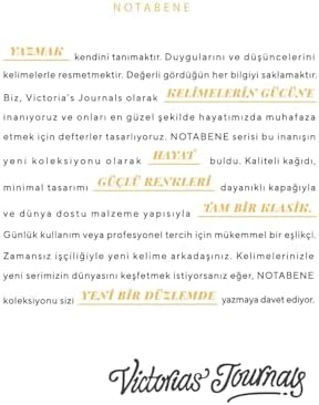 14.8×21 cm taşınabilir ve fonksiyonel boyut. Şık ve sağlam sert kapak. 96 yaprak çizgili sayfa. Düz tel bağlama ile rahat açılır. Günlük, ofis ve akademik kullanım için ideal. Zarif tasarımı ile her stile hitap eder. Kompakt yapısıyla çantaya kolayca sığar. Victoria’s kalitesi ile üretilmiştir. Nota Bene Premium Sert Kapak Defter, 14.8×21, Çizgili