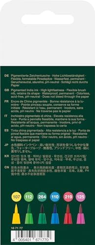 Solmaya dayanıklı, kuruduğunda kalıcı mürekkep Dağılma yapmaz Kokusuz, asit içermeyen mürekkep Çabuk ve kendiliğinden gelişen çizimlere uygundur %100 geri dönüşüm plastikten ambalaj Pen Çizim Kalemi Fırça Uçlu Serisi 6'lı