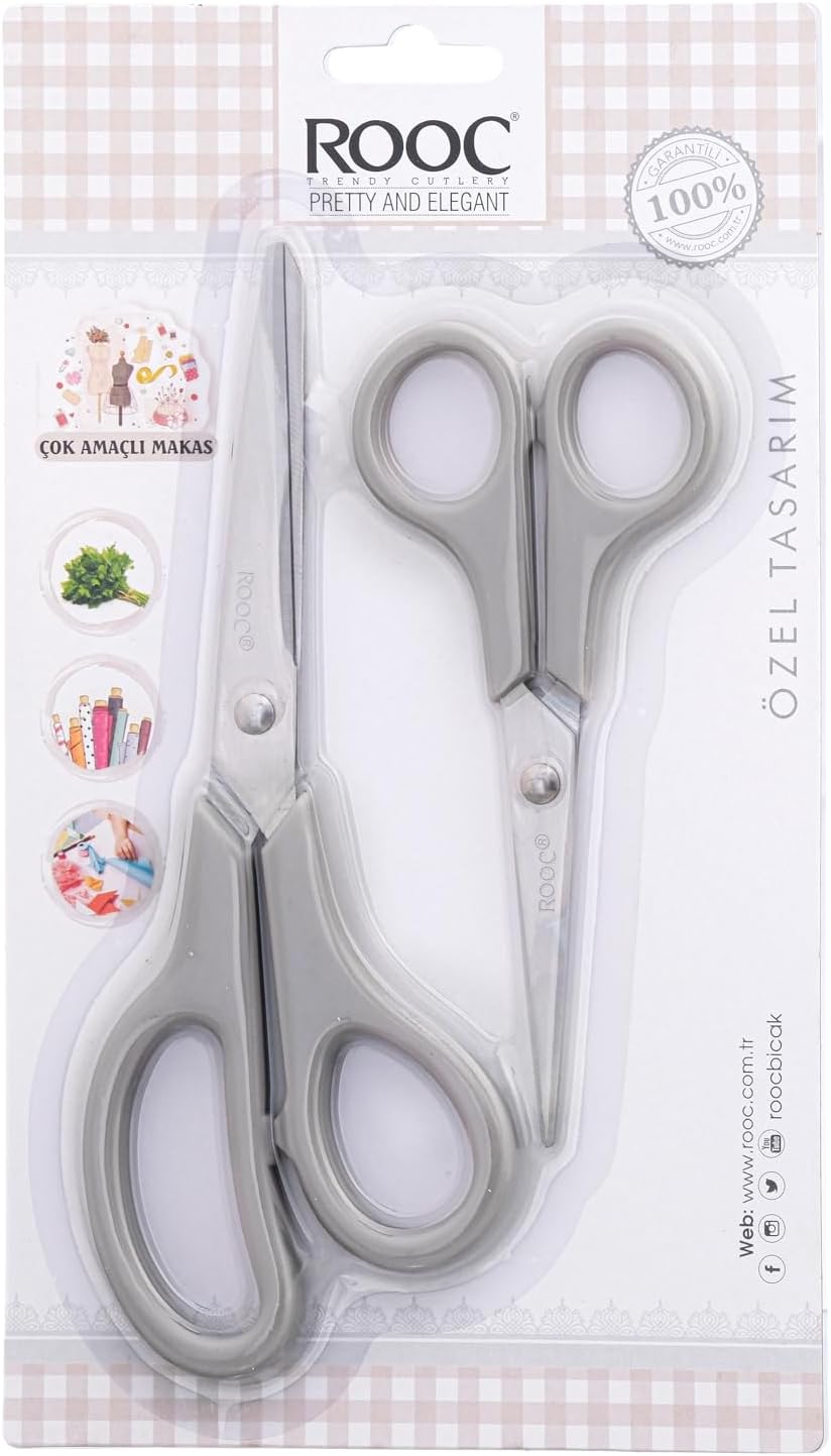 Paslanmaz çelik 2'li set Ergonomik sap Gıda ile temasa uygundur Uzun ömürlü kulanım sunar Premium Serisi Ergonomik Saplı Çelik Gıdaya Temasa Uygun 2'li Mutfak Makası, Gri