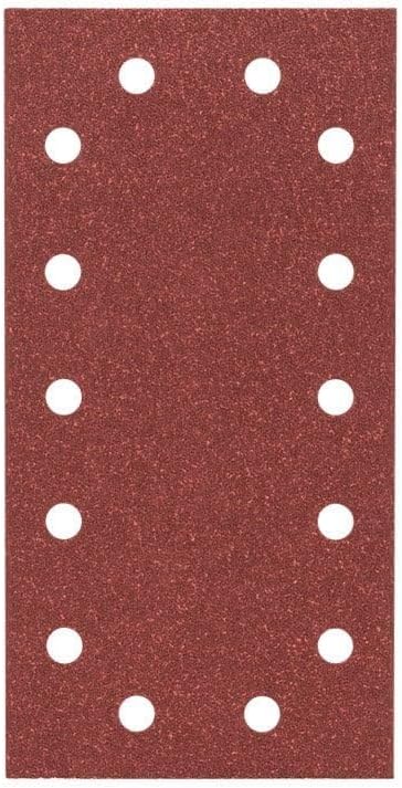 Zımpara kağıdı ölçüsü mm: 115 x 230 Delik sayısı: 14 Kum kalınlığı: 4 x 60; 4 x 120; 2 x 180 Professional Zımpara, Kırmızı, 10 Adet