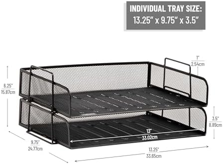 İki istiflenebilir çalışma masası düzenleyici: Çalışma masanız için bu dosya klasörü düzenli kalmanıza yardımcı olur. Artık kamaştıran kağıt veya evrak yığınlarına son. Bu kolay istiflenebilir evrak raflarıyla optimum çalışma masası düzenlemesini alın. Ofis veya eviniz için: Kim zaman zaman ofis organizasyonunda yardıma ihtiyaç duymaz? Çalışma masanız için belge düzenleyici olarak kullanın. İster kağıt, makbuz, klasör veya cetvel, zımba, zımba teli veya yapışkan bant gibi kırtasiye malzemeleri bu pratik düzenleyici ile her şeyi halledersiniz. Sağlam tasarım: Çelik kafes tasarımıyla üretilen bu ürün sonsuza kadar dayanacak şekilde üretilmiştir ve kağıt, klasör, kalem, kurşun kalem ve daha fazlasını kolayca alabilir. 2'si 1 arada: Bu çalışma masası düzenleyici 2'li set halinde teslim edilir ve her bölme geniştir ve her türlü belgeyi saklamak için yeterince geniştir. Bu sizin için daha fazla değer ve daha fazla düzen anlamına gelir. Ölçüler (U x G x Y): 33,7 x 24,1 x 7,6 cm Reader Çalışma masası belge düzenleyici, 2 parça, istiflenebilir, siyah, 2 adet