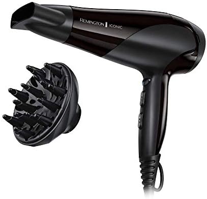 Remington İyonik Saç Kurutma Makinesi, 2200 W, 3 Isıtma ve 2 Ayrı Fan Kademesi + Soğutma Kademesi, Difüzör Başlıklı, D3198 [Amazon'a özel]